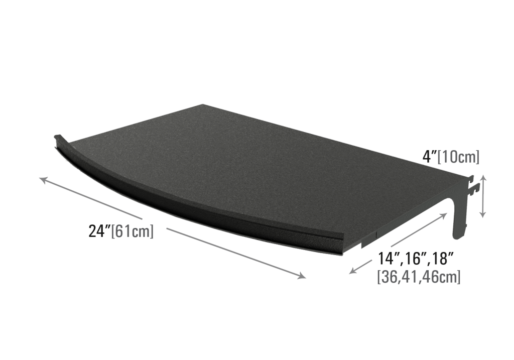 Curved tray with price track installed. Made of ABS material. Optional curved fence available. Shown with optional price track.