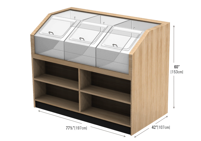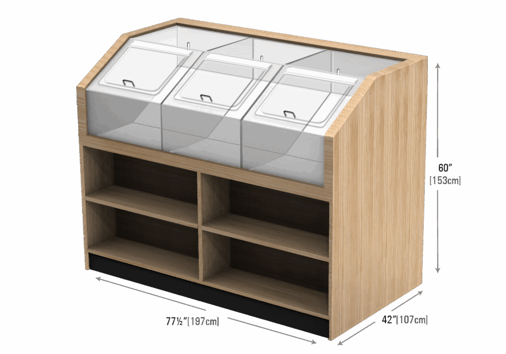 Perfect for hot bread, our display has an acrylic top view with an easy access window. Bottom shelves enable cross merchandising for added versatility.