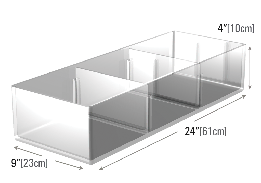 Similar to our PDT14, this version includes 2 removable dividers, perfect for shallow shelves on multi-deck cases. Its almost invisible design highlights the product, available in black as well.