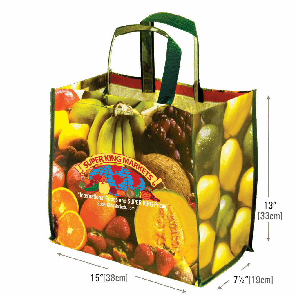 15”x8½”x13” [38x22x33cm] Have a hand in lessening the environmental foot print left behind by giving your customers the option to go green and minimize their use of plastic shopping bags with these attractive Eco-bags. Together we can put in the effort to make the world a cleaner safer place for all living creatures.