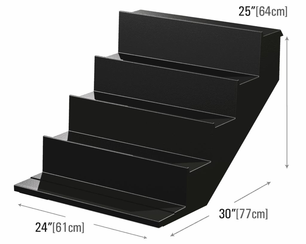 Designed for cases with short mirrors, this five step riser creates a higher profile, making it ideal for showcasing berries.