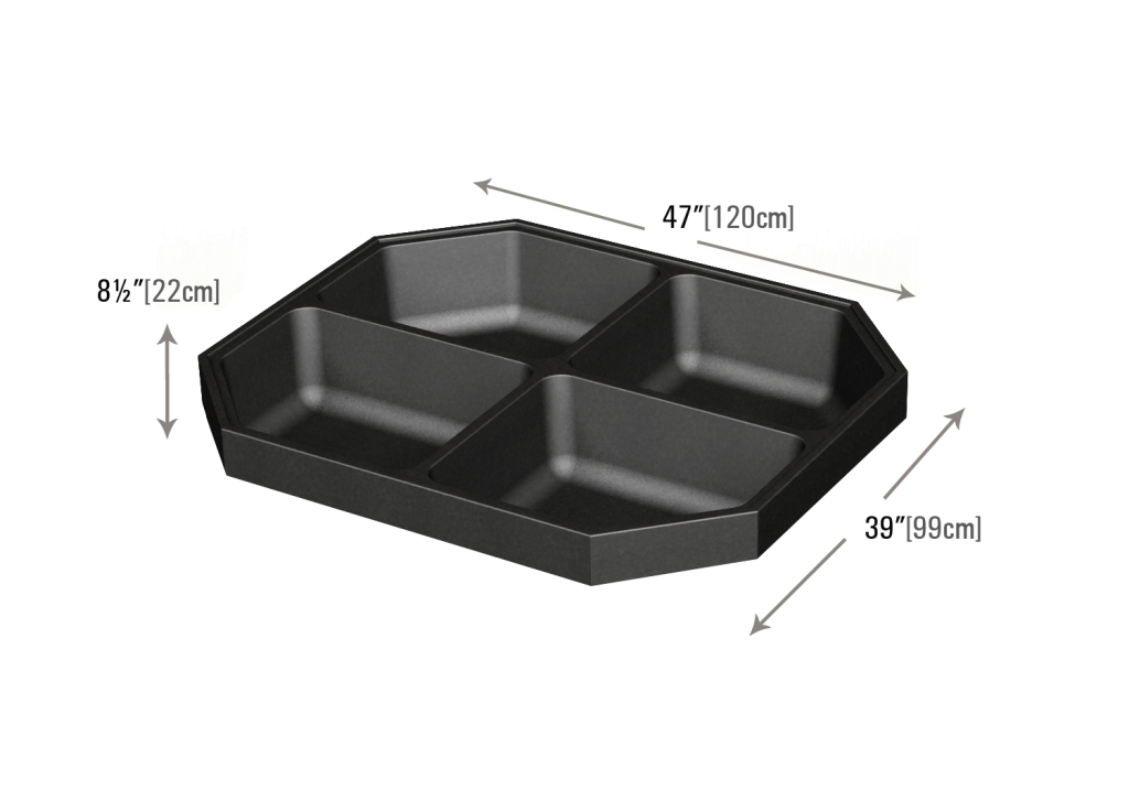 Our four compartment bin top features four 8½”[22cm] deep compartments, ideal for merchandising bulk items. An optional acrylic lid with handles is also available.