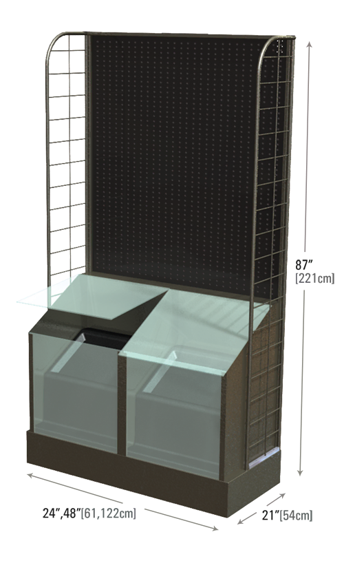 Mobile metal displays combine durability and flexibility with locking casters for easy movement. Adjustable shelves showcase RPCs, boxes, or trays, while optional canopies and price tracking add an upscale, polished look.