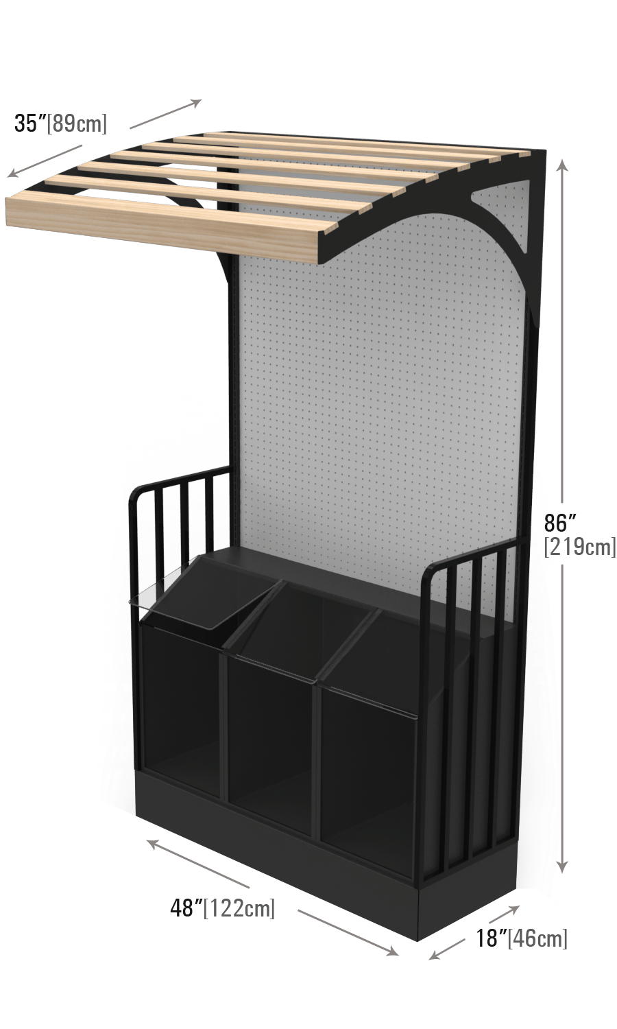 Square bins combine durability and versatility with wood, plastic, and metal options to fit any style. Configurable with risers and accessories, they enhance visibility, adapt to promotions, and create clean, attractive displays.