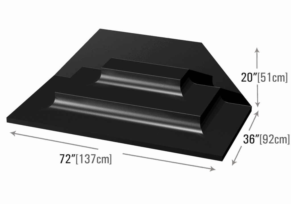 Featuring two curved steps, this end riser is crafted for the purpose of displaying bananas, melons, or other large rounded fruits with a distinct profile.