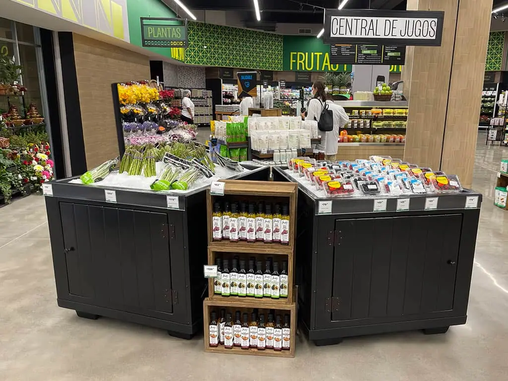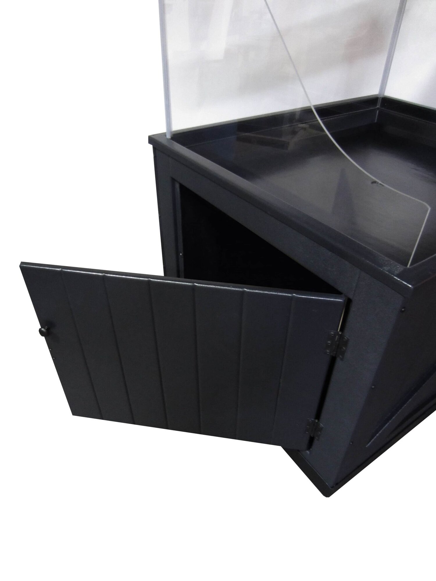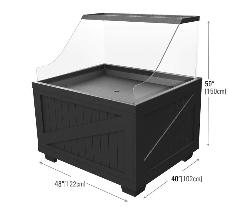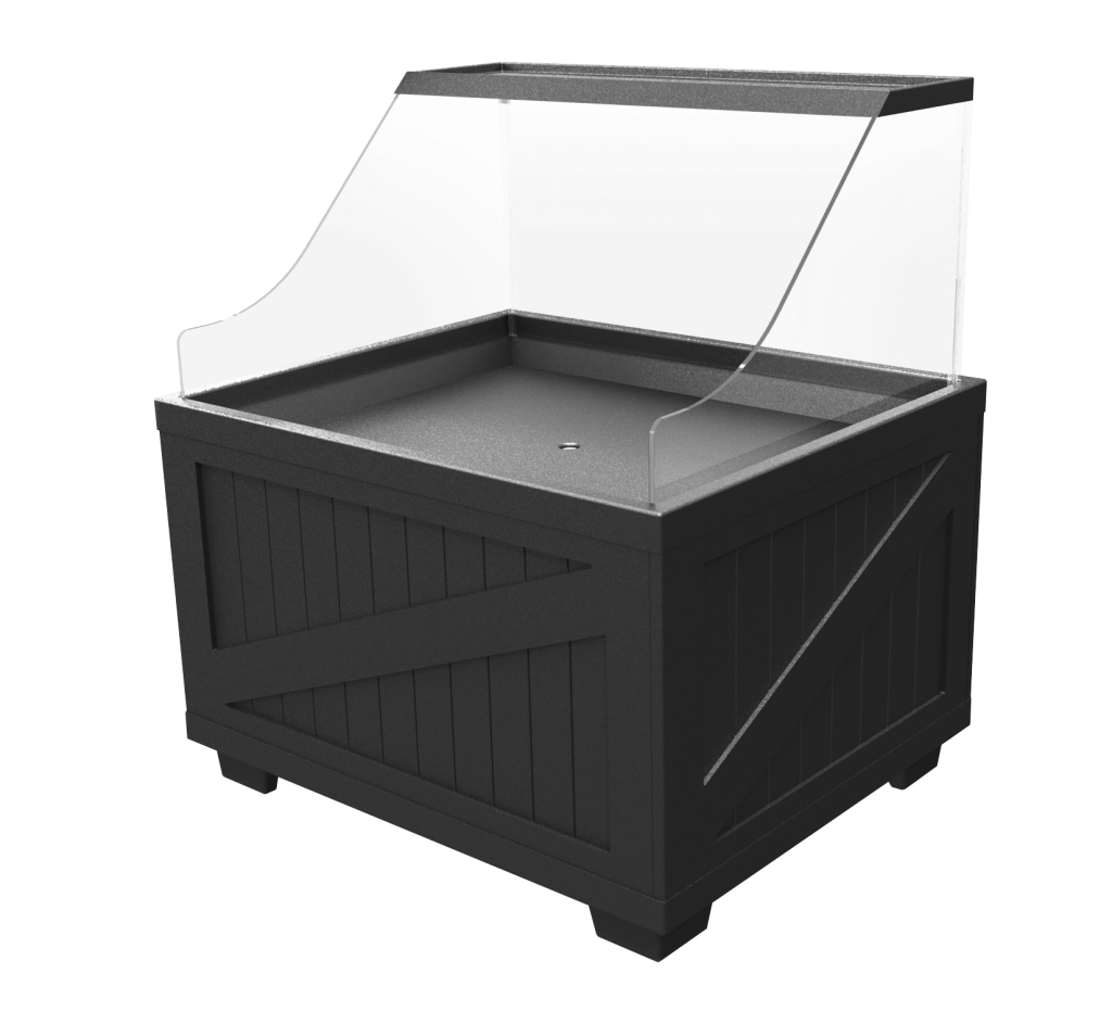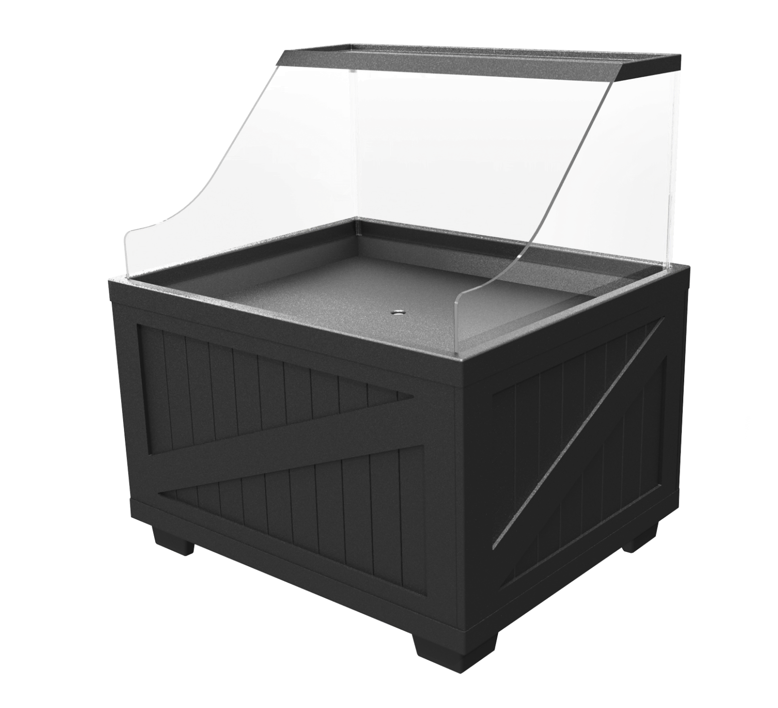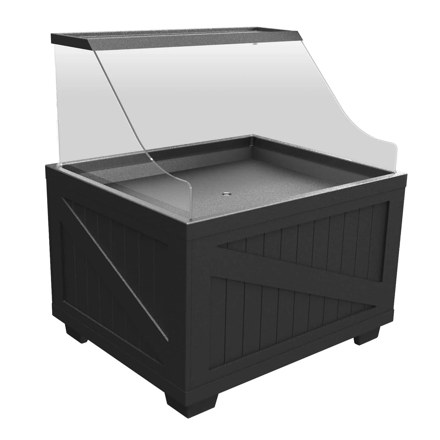Ideal for showcasing fresh seafood, this bin with plastic panels and a bin top includes a drain kit, sneeze guard and top shelf for seamless cross merchandising.
