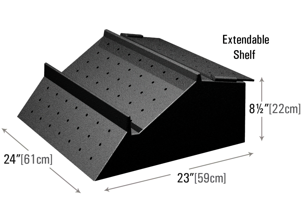 Adjustable extension to fit all cases, ideal for multi-deck cases and one step racks. Includes product stops to prevent sliding, perforated for better air flow.