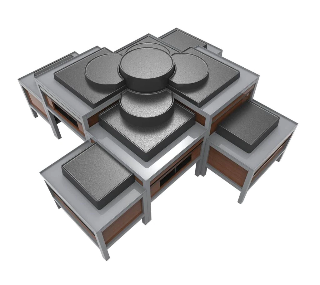 Signature dry tables combine durability with design flexibility, serving as the foundation of produce merchandising. Modular styles—from wood and steel to round-end and small-footprint—adapt to any layout while showcasing fresh product.