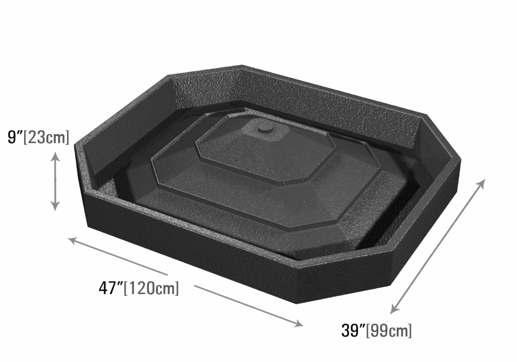 Bin top with a built-in 9”[23cm] high pyramid riser for a consistently elevated look without requiring a large quantity of product.
