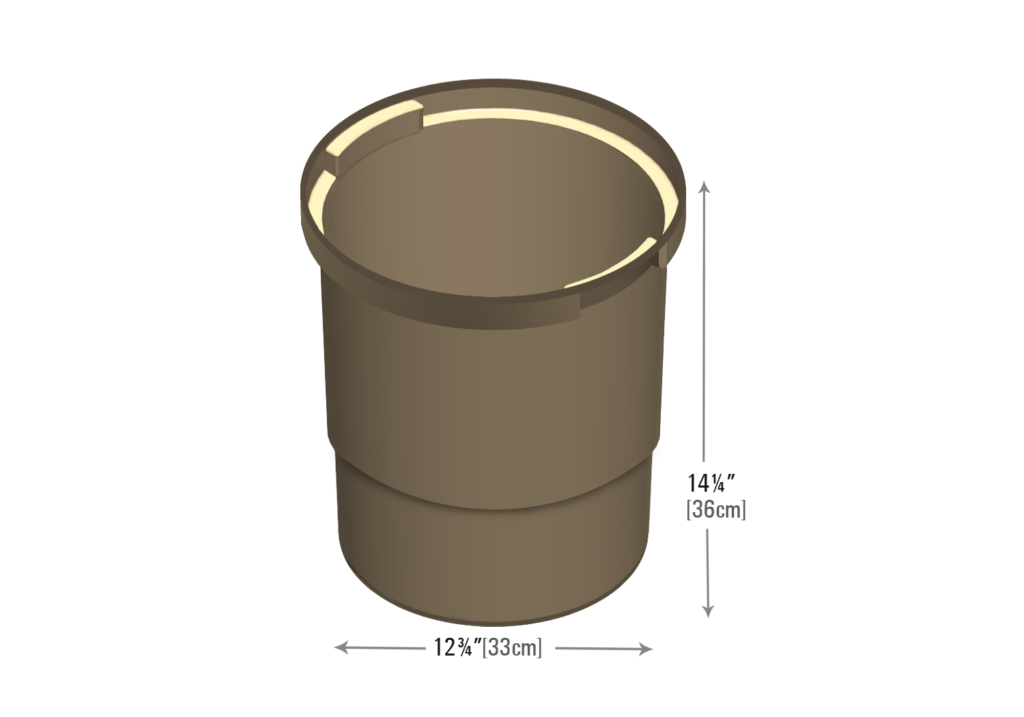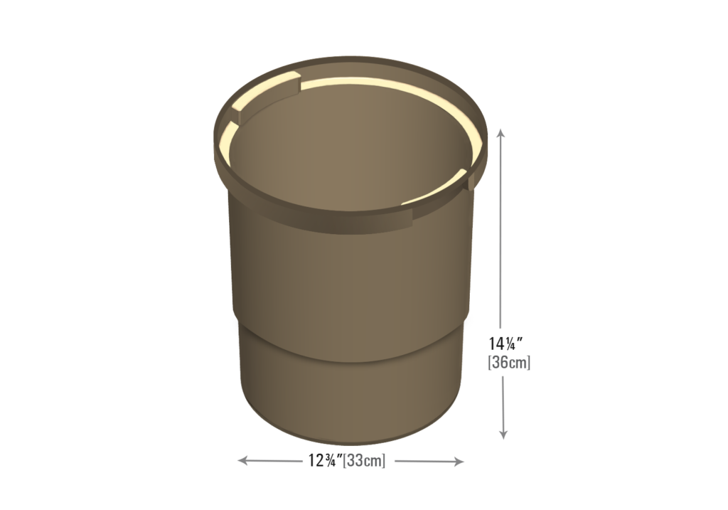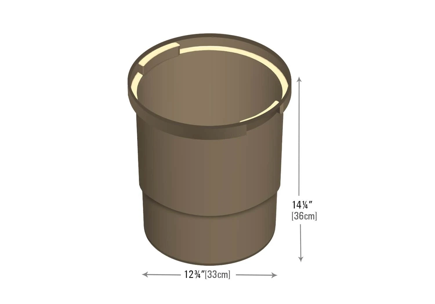 Combined with a wood sleeve, it gives a faux barrel appearance. Molded handles provide easy lifting. Optional insert, lid and scoop holder available.