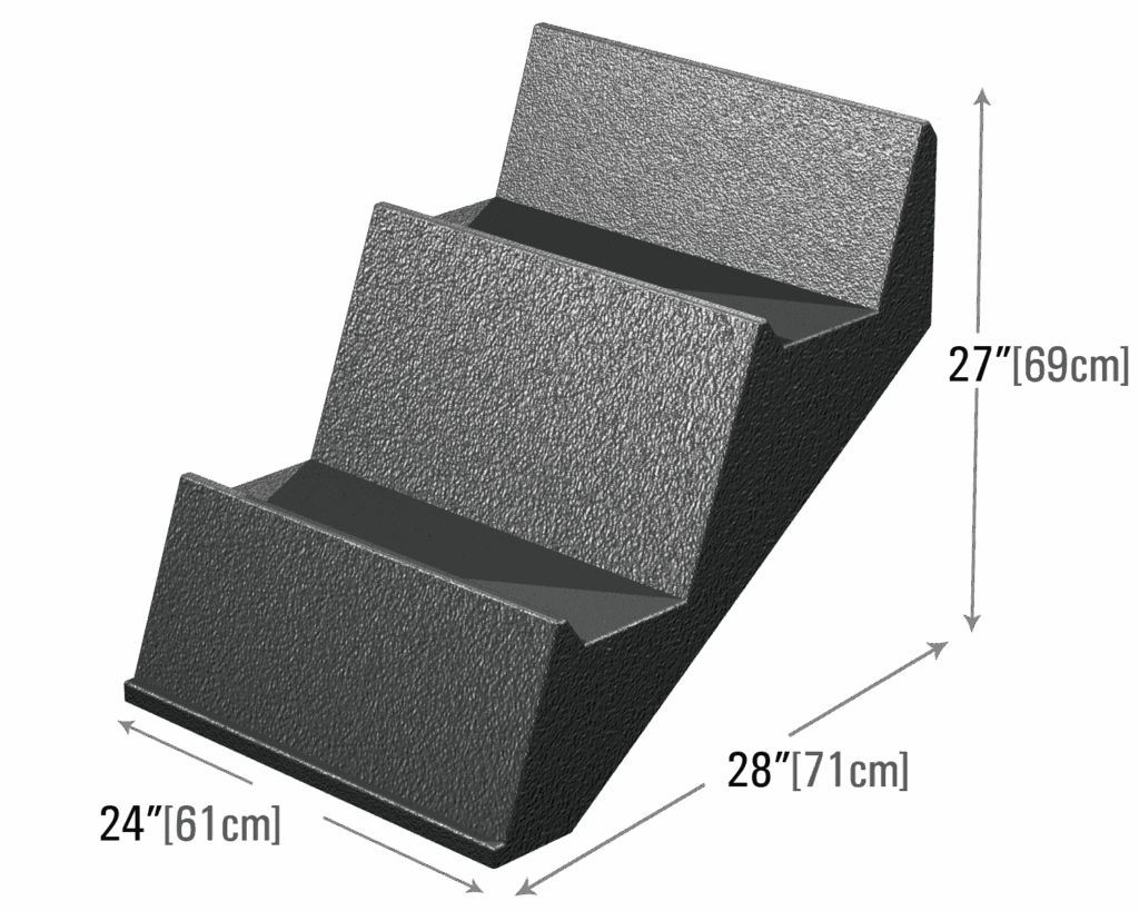 Enhance your presentation with the 3-step design of this riser, ideal for the DT900 dry table. Its high profile and front lip ensure an eye catching display that holds products securely in place.