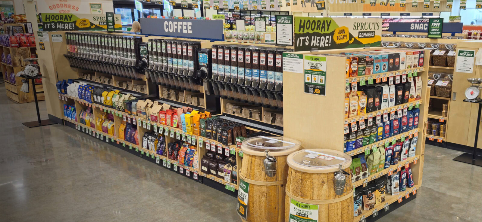 Alco’s bulk fixtures such as gravity and scoop bins, barrels, spice racks, and dry tables preserve freshness, reduce shrink, and keep departments organized with clean, profitable displays that highlight grains, beans, spices, and packaged goods.
