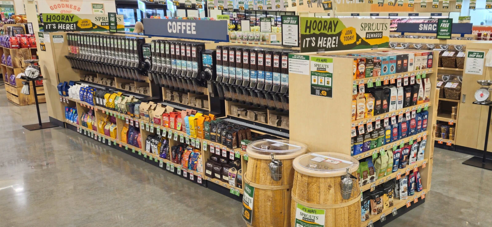 Alco’s bulk fixtures—gravity and scoop bins, barrels, spice racks, and dry tables—preserve freshness, reduce shrink, and streamline organization, creating clean, profitable displays that elevate grains, beans, spices, and packaged goods.