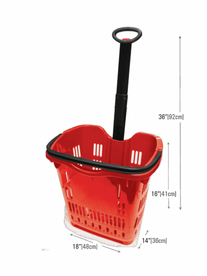 A must-have for quick trips, our heavy-duty plastic baskets with steel handles provide strength and capacity. Optional stands keep them organized, while rolling baskets add convenience and encourage larger purchases.