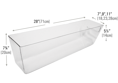Clear front risers feature transparent panels that showcase herbs and vegetables while keeping them contained. Removable fronts allow easy cleaning and rotation, with optional dividers and extendable formats for flexible merchandising.