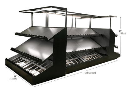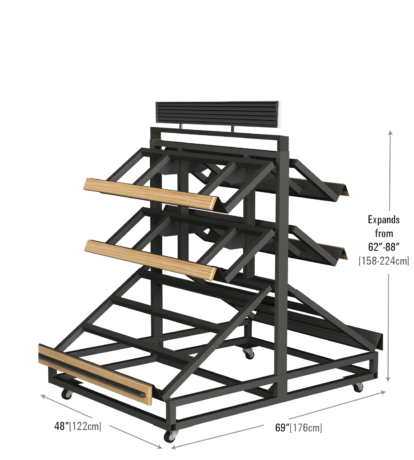 Mobile metal displays combine durability and flexibility with locking casters for easy movement. Adjustable shelves showcase RPCs, boxes, or trays, while optional canopies and price tracking add an upscale, polished look.