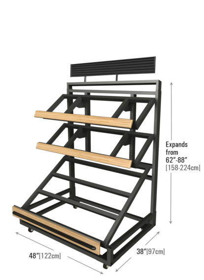 Mobile metal displays combine durability and flexibility with locking casters for easy movement. Adjustable shelves showcase RPCs, boxes, or trays, while optional canopies and price tracking add an upscale, polished look.