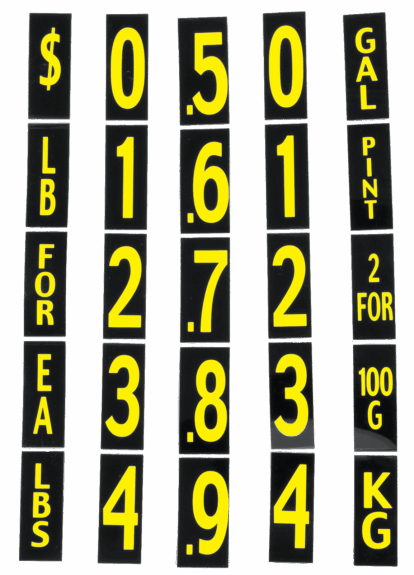 Price Track System streamlines pricing and adds a professional finish. One- or two-sided black rails with optional frames pair with accordion number kits for quick, easy updates.