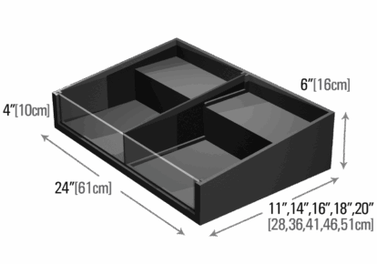 Fences create clean edges and keep products secure in cases and displays. Available in angled, corner, or clear front designs, they combine function with a polished, professional look.