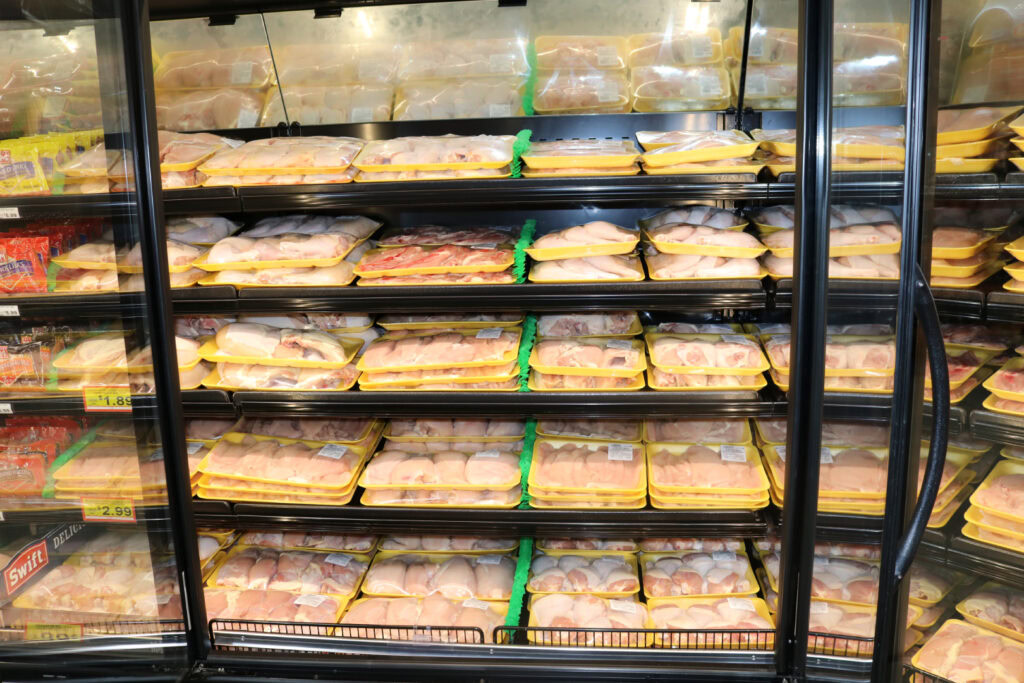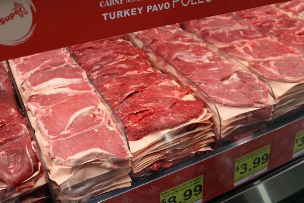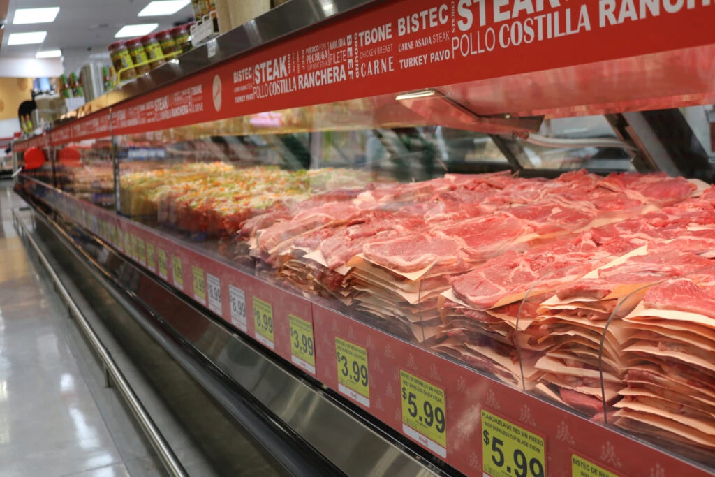 This meat department is designed to showcase every cut at its freshest. Custom pans and risers create height and depth, giving the case an abundant, market-style look while keeping products organized and easy to reach.