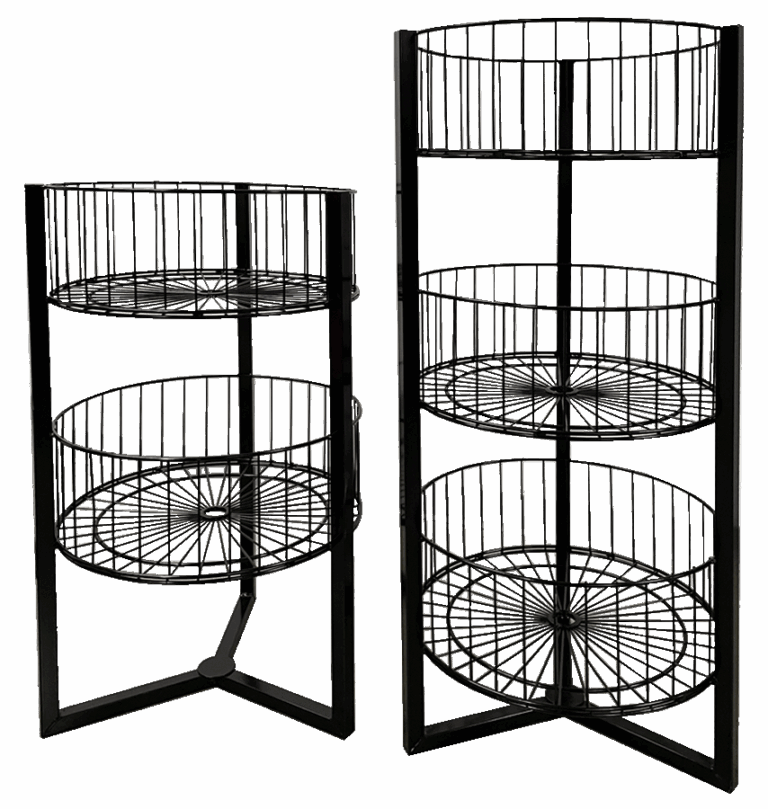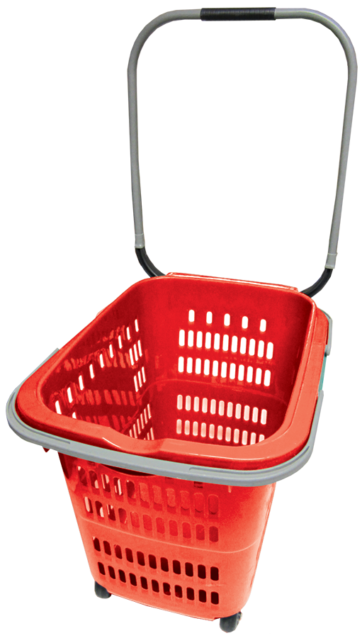 A must-have for quick trips, our heavy-duty plastic baskets with steel handles provide strength and capacity. Optional stands keep them organized, while rolling baskets add convenience and encourage larger purchases.