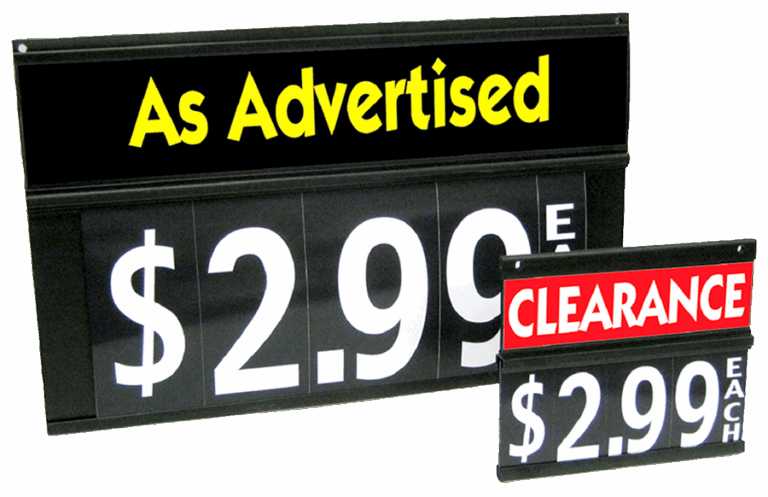 Price Track System streamlines pricing and adds a professional finish. One- or two-sided black rails with optional frames pair with accordion number kits for quick, easy updates.