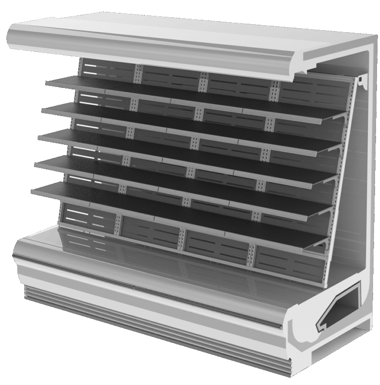 Rack replacement risers upgrade refrigerated wall cases by replacing metal racks with smooth, organized surfaces. Built-in containment reduces bruising and shrink, creating cleaner, fuller displays and a modern, efficient merchandising solution.