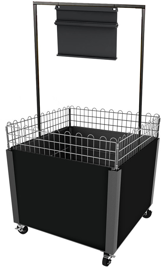 Square bins combine durability and versatility with wood, plastic, and metal options to fit any style. Configurable with risers and accessories, they enhance visibility, adapt to promotions, and create clean, attractive displays.